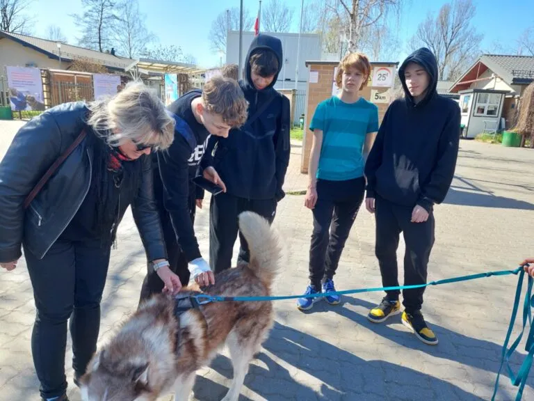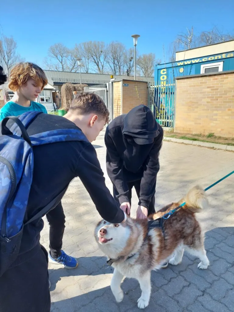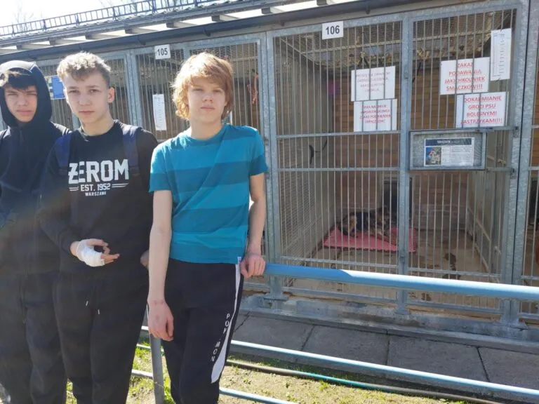 Pies Wojtek ze schroniska „Na Paluchu” ma nowy dom! 🙂 Pojechaliśmy do naszego podopiecznego, zawieźliśmy górę darów zebraną dzięki wielkim sercom naszych uczniów i ich rodziców i pożegnaliśmy się z Wojtkiem. Niestety nie mogliśmy spędzić z nim ( jak zawsze) czasu podczas zabawy, ponieważ nie było opiekuna , który wyprowadza Wojtka. Odwiedziliśmy Wojtka w jego boksie i tam spędziliśmy z nim kilka chwil. Podczas naszej wizyty w schronisku mieliśmy spotkanie z p. Katarzyną Świeżak, która zawsze oprowadza nas po schronisku opowiadając o życiu psów i kotów, o ich trudnych historiach, a my nadal nie możemy zrozumieć nieodpowiedzialnego postępowania dorosłych. Wolontariusze zaciekawieni opowiadaniem p. Katarzyny zdawali wiele pytań, a nasza wyprawa przeciągnęła się do kilku godzin i zakończyła się niespodziewanym spotkaniem ze wspaniałym psem o imieniu Konan i jego opiekunką. Konan został naszym nowym podopiecznym !!!:) .