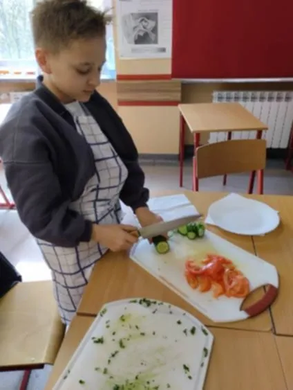 Uczniowie kl.5a uczestniczyli w projekcie przyrodniczo- ekologicznym pt. „ Od ziarenka do roślinki”, którego celem było realizacja podstawy programowej z botaniki. Zadania projektu wpisane były ściśle w innowację pedagogiczna, którą w szkole realizuje p. Kataryna Bajno pt. „Ekoszkoła to ekouczeń”. Uczniowie poprzez zajęcia praktyczne poznali zależności przyrodnicze, obserwowali wzrost roślin, przekonali się, że fotosynteza jest ściśle związana z samożywnością roślin, zobaczyli jaka siła drzemie w maleńkich nasionach pomidora, fasoli, grochu. Uczniowie obserwowali wzrost szczypiorku, który wyhodowali z najzwyklejszej cebuli dymki oraz cukrowej. Dzięki hodowli dzieci z łatwością potrafiły wskazać części roślin: korzenie, pęd, łodygę i liście…na owoce musimy jeszcze poczekać. Zajęcia tak bardzo zaciekawiły piątoklasistów, że codziennie czekali przy sali lekcyjnej, aby zajrzeć do hodowli. Dzieci troskliwie zajmowały się roślinami, pielęgnowały, podlewały i były bardzo dociekliwe! Podsumowaniem projektu było śniadanie klasowe z wykorzystaniem klasowych plonów. Uczniowie przy pomocy p. Katarzyny Bajno i wychowawczyni kl.5a p. Wiktorii Charzewskiej przyrządzili wspaniałe kanapki z twarogiem, których głównym bohaterem był szczypiorek z własnej hodowli. Dzieciaki zajadały się ze smakiem. Były tak dumne z własnego szczypiorku, iż postanowiły poczęstować kanapkami pracowników szkoły .