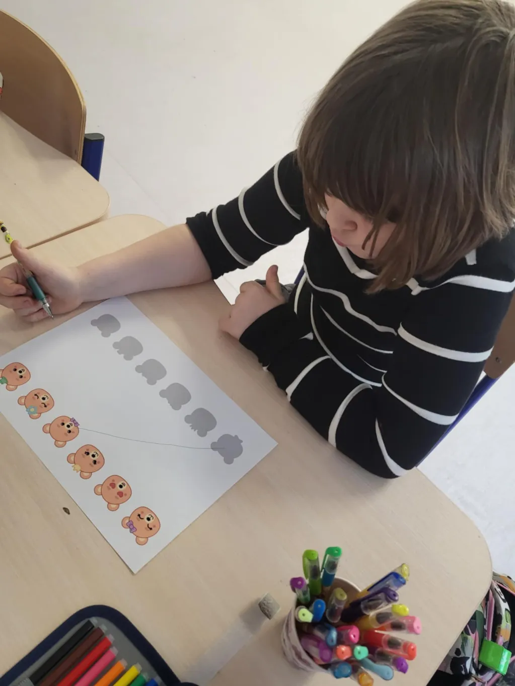 W ciągu dnia uczniowie wykonywali różnorodne zadania związane z misiowymi bohaterami. Ćwiczyli liczenie, czytanie, pisanie, a także rozwijali swoją kreatywność w pracach plastycznych. Każde dziecko mogło dać upust swojemu artyzmowi, tworząc misiowe rysunki i kolorowe kompozycje.