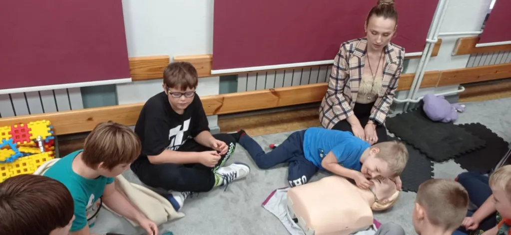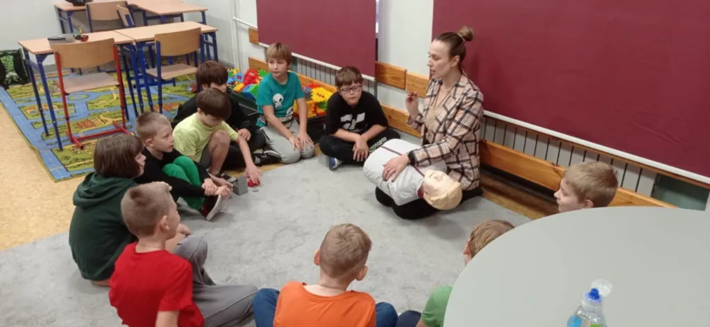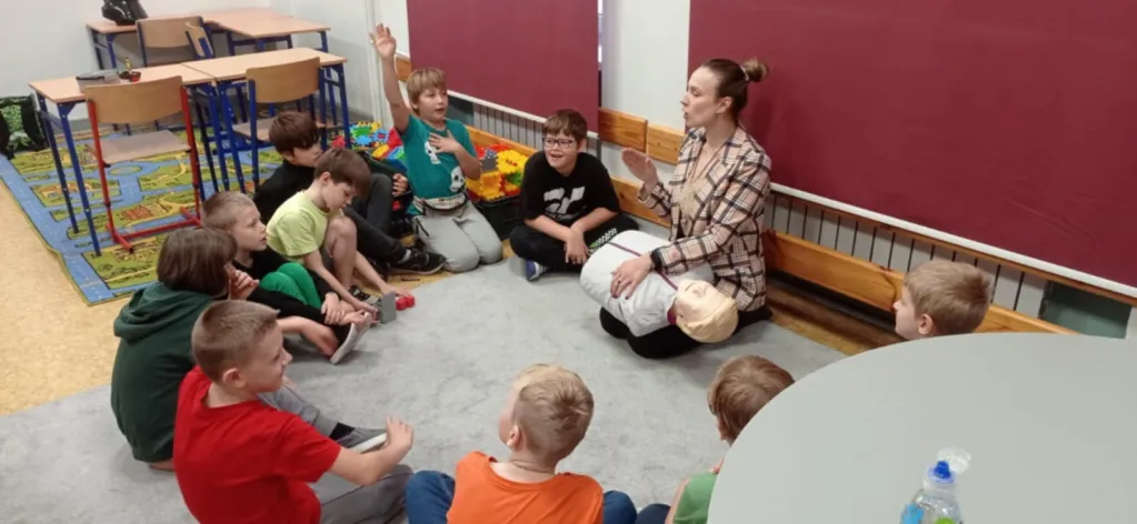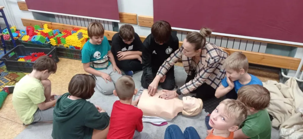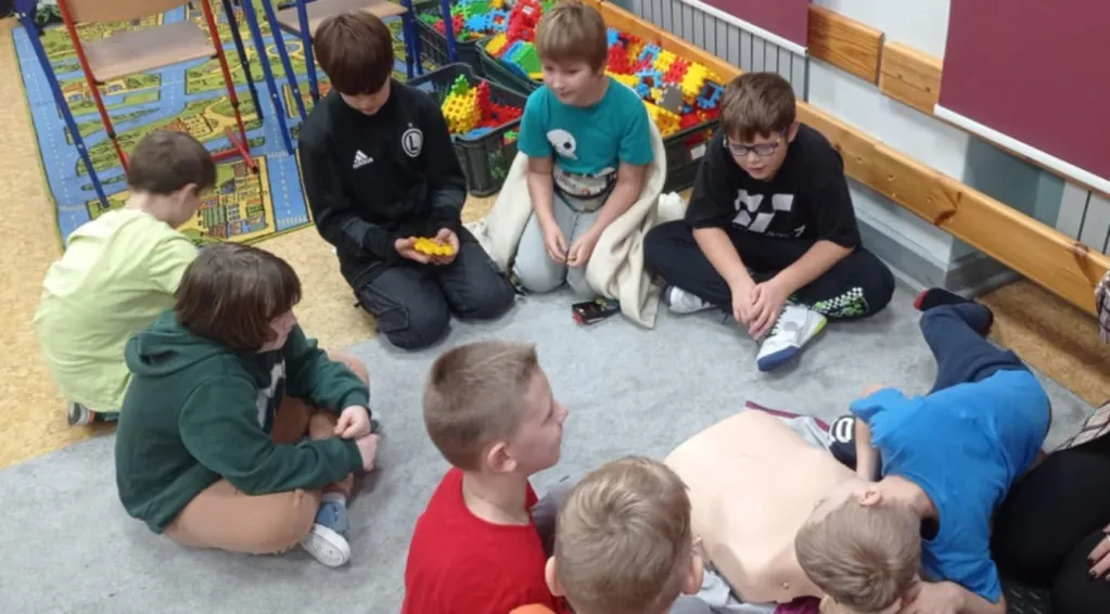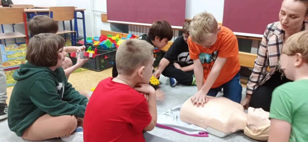 Wychowawcy klas przygotowali warsztaty pierwszej pomocy, podczas których dzieci uczyły się, jak prawidłowo reagować w sytuacjach zagrożenia życia. Uczniowie mogli samodzielnie ćwiczyć na fantomach oraz korzystać z akcesoriów szkoleniowych, co pozwoliło im zrozumieć, jak wygląda realna akcja ratownicza.