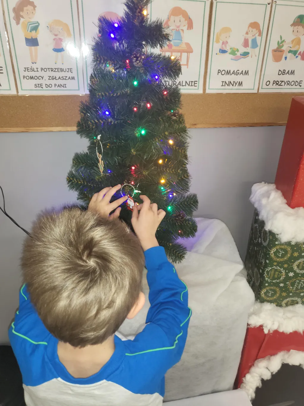 Dodatkowo sale klas I, II i III zamieniły się w prawdziwie świąteczne pokoje. W przytulnej, bożonarodzeniowej atmosferze dzieci wykonywały różnorodne zadania świąteczne, ucząc się poprzez zabawę i współpracę. Również w tym miejscu składamy podziękowania Rodzicom za pomoc w dekorowaniu sal i stworzenie wyjątkowego klimatu.
