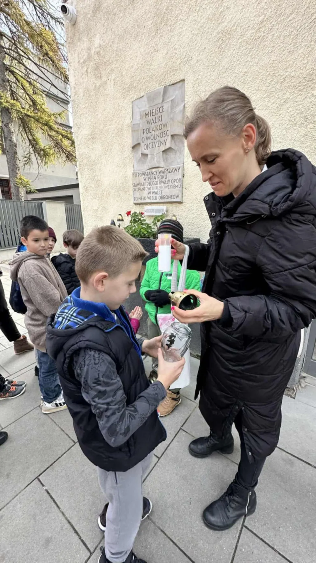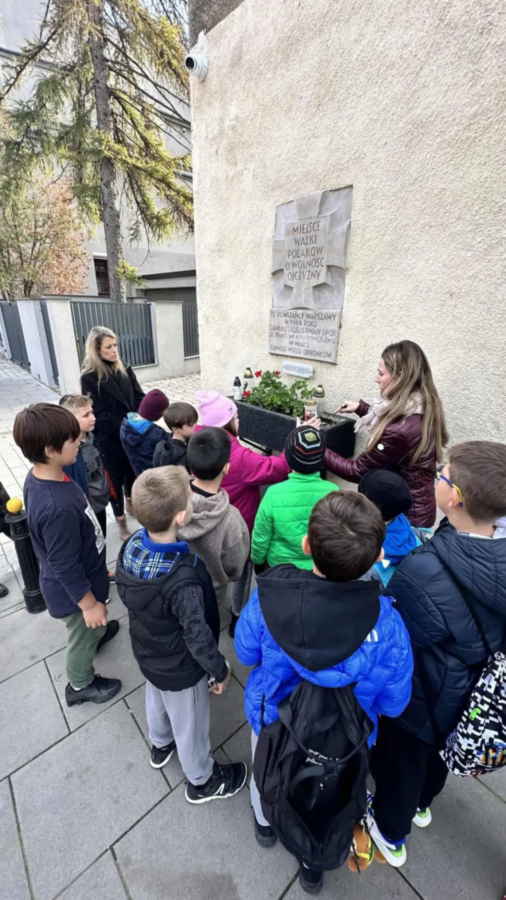 W ramach działań uczniowie udali się do pobliskiego miejsca pamięci, którym była tablica upamiętniająca ofiary II wojny światowej. Dzieci z szacunkiem oddały hołd poległym, zapaliły symboliczne znicze oraz wysłuchały krótkiej opowieści o wydarzeniach związanych z tym miejscem.