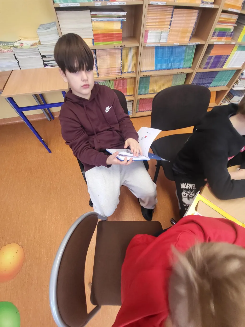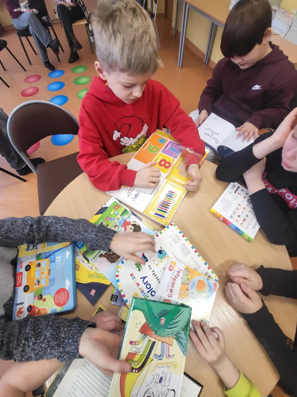 Uczniowie klas I–II zostali zaproszeni na kolejne warsztaty czytelnicze, podczas których tym razem mieli okazję zapoznać się z nowościami bibliotecznymi. Spotkanie było pełne ciekawych opowieści, inspiracji i radości z odkrywania książek.