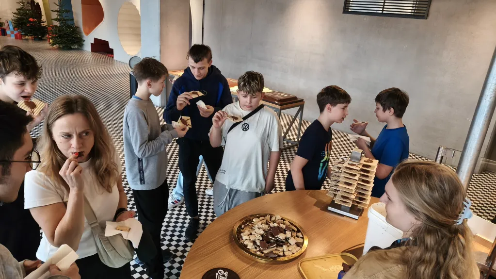 W dniu 11 grudnia 2025 r. grupa 20 uczniów naszej szkoły, odbyła wycieczkę do najsłodszego miejsca w Warszawie Muzeum Czekolady Wedla.