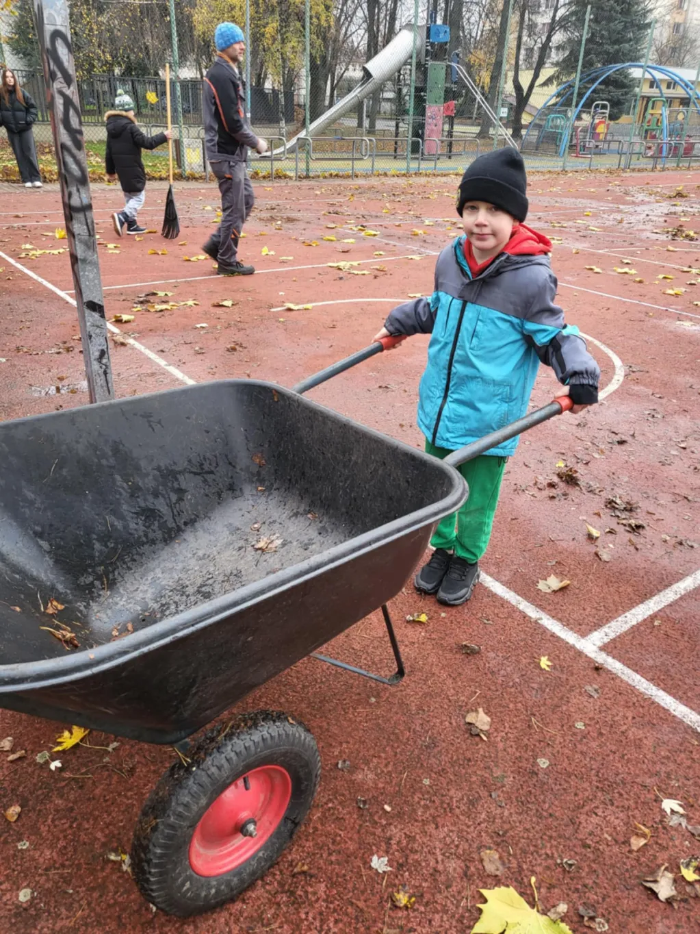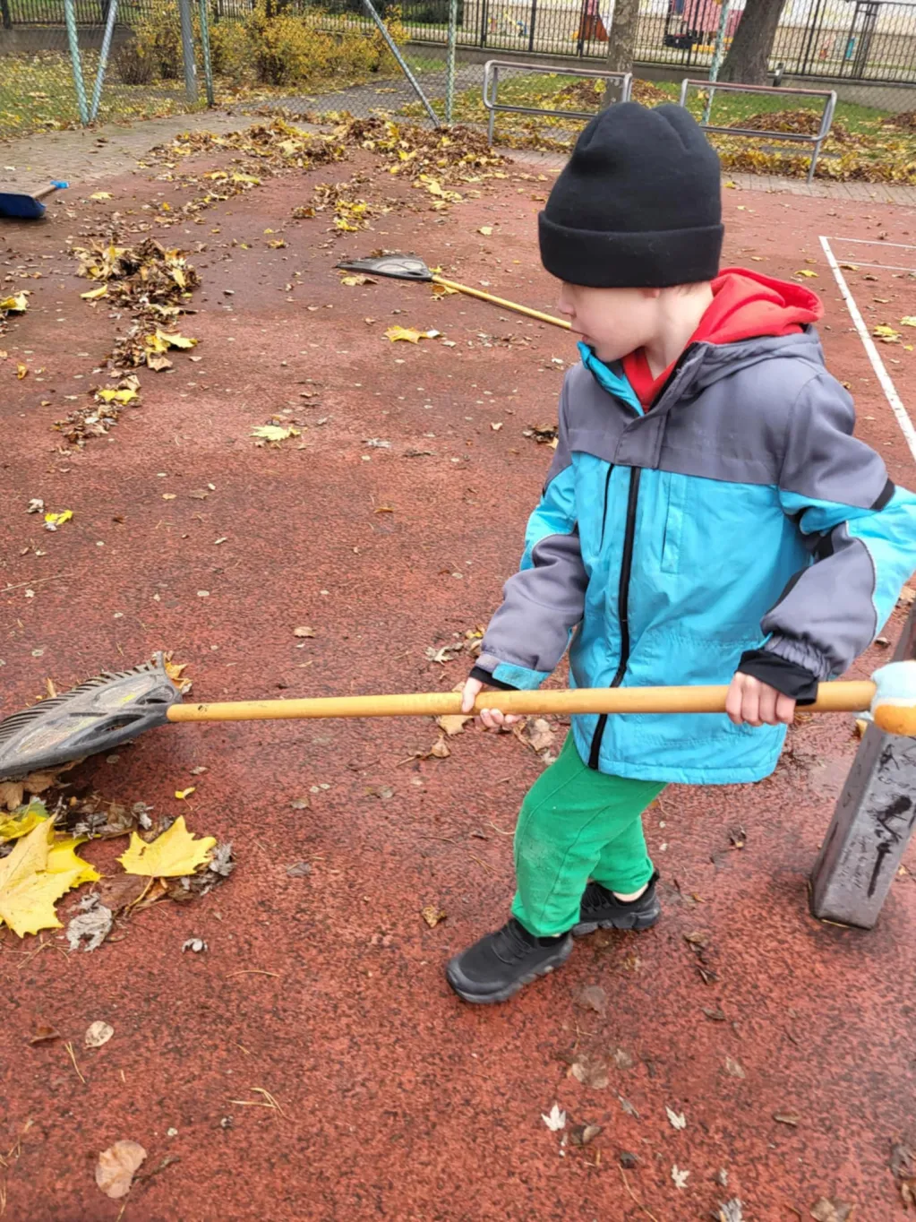 Po krótkim zapoznaniu się z instrukcją oraz pod czujną opieką swoich wychowawczyń uczniowie ochoczo i z dużym zapałem przystąpili do grabienia liści. Wspólna praca sprawiła im wiele radości, a jednocześnie pozwoliła lepiej zrozumieć, ile wysiłku wymaga utrzymanie ogrodu, z którego mogą korzystać każdego dnia.