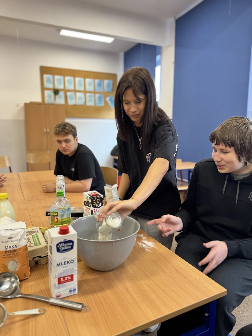 Podczas godziny wychowawczej uczniowie klasy 8a, pod opieką swojej wychowawczyni Pani Anny Brzostek, wzięli udział w kolejnym spotkaniu z cyklu „Wspólne śniadanie”. Tym razem na stole królowały domowe gofry – przygotowane własnoręcznie przez uczniów!